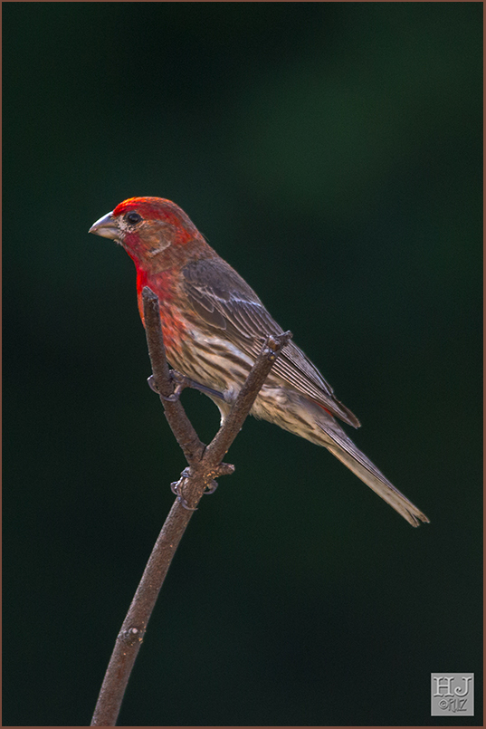 If you look up a bit you can see a handsome male House Finch perched on a branch, most likely keeping an eye on the family not very far from there. They are very united and families are close neat members.