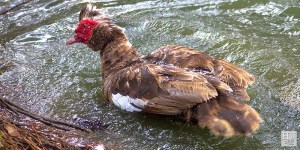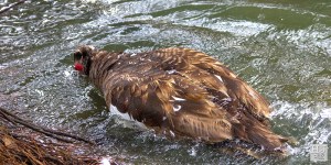 Muscovy Ducks are so nice! My younger daughter thought our neighbours’ Muscovy duck was a mutant half-duck half-chicken! They move their heads back and forth like a chicken when they walk don’t they? Lovely shots of a bathing duck!