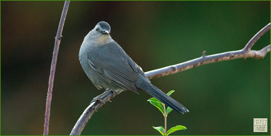 Welcome! Look up to the branches about the middle of the deck, can you see that handsome Gray Catbird? That’s a delightful sight, this visitor rarely shows up and usually stay for only a few minutes. This bird loves to just peek around and see what’s going on at the feeders. This one in particular has a gorgeous plumage that I assume he must have just renewed after the molting. Looks strong and healthy!L-067