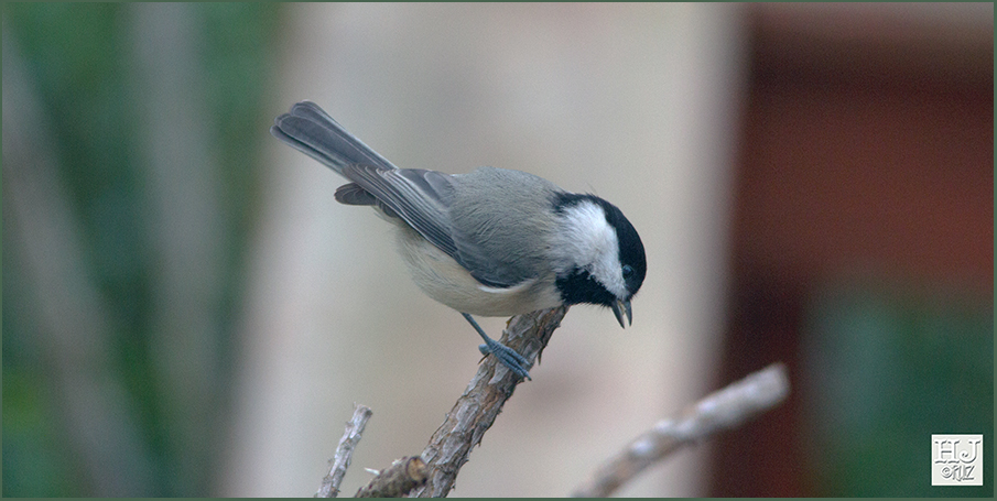 There on the left, it’s a Carolina Chickadee, what a great little bird, busy like a bee. All day long he is going back and forth getting seeds for his nest’s storage space. These birds are very conscious of the coming Winter and he’ll do the necessary to have enough supplies for in case of extreme weather. Good for them!L-101