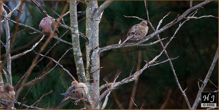 Take a look up to that leafless tree from the background, can you see those birds? They are Mourning Doves. These birds are a permanent fixture in my backyard, in every season of the year. They too have been here from the first day, they are part of a large family of birds. I give them credit at least for… never missing a meal!