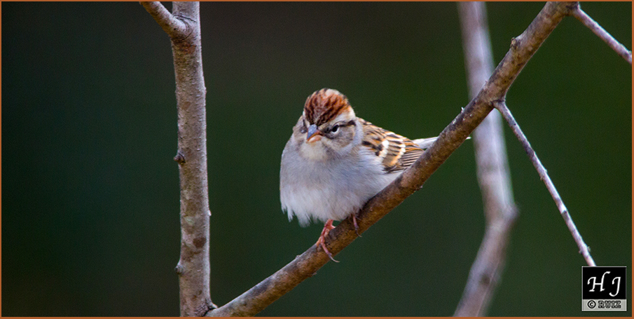 The wind is starting to blow and at times strong gusts of air make every plants, grasses, leaves as well as birds, seeds and anything not tied down fly like a kite! Look to your right, there’s a Chipping Sparrow perched on that branch holding on tight because the breeze is getting stronger. He might have to find shelter soon!L-134