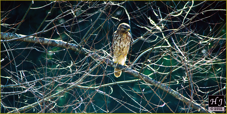 Talking about predators! Take a good look at that naked tree on the far right, that bird is a predator! A Cooper’s Hawk keeping an eye on the pray at the distance and then when the moment is right, simple pounce and …you know what follows!L-136