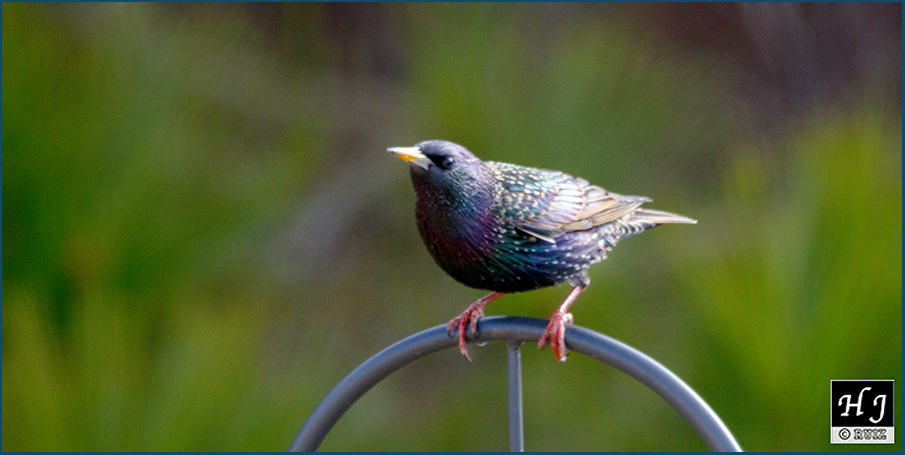 Perched up on that metal hanger is an European Starling that refused to fly South for migration, he’s always retuning to the feeders. He’s reaching adulthood (See ivory color bill) I just hope that he finds a mate for next Spring.