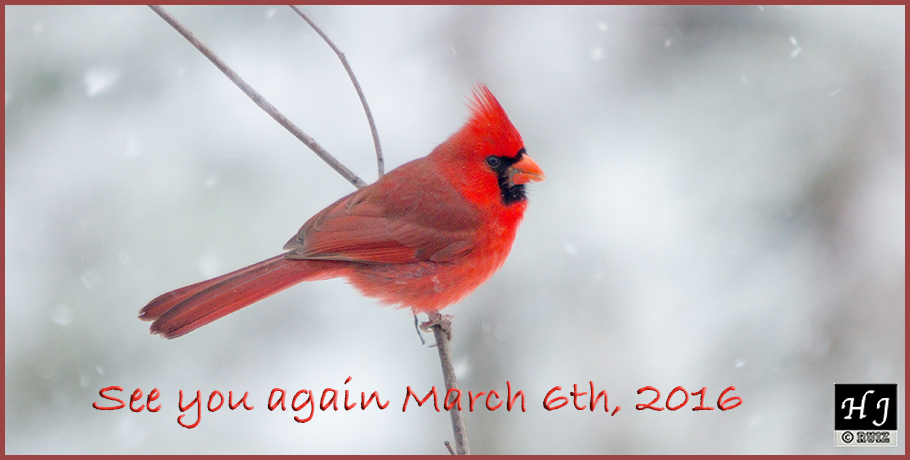 “I hope that my absence will not lead some of my followers to unsubscribe from my blog. When I return i’m sure I’ll have some good stories and I hope great bird photos for all of you, my good friends. Thank you!” – H.J.