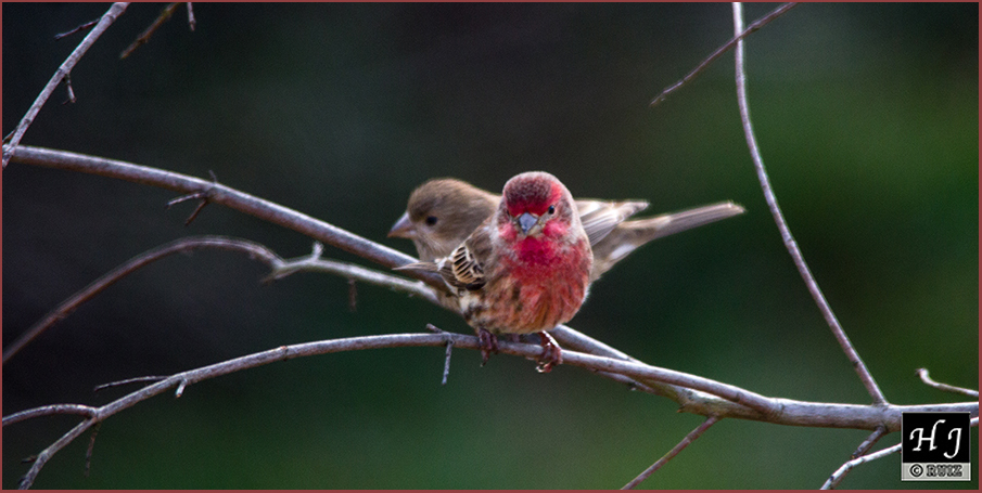 On the right side over the deck, can you see that lovely couple of House Finches? They are so romantic, they don’t separate more than a foot distance! “That’s amore!”L-142