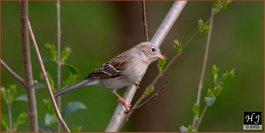There’s a Field Sparrow getting ready to fly down to one of the feeders on the deck. He too looks pretty well eager to get his favorite seeds. These little birds are frequent visitors as you must know already.L-174
