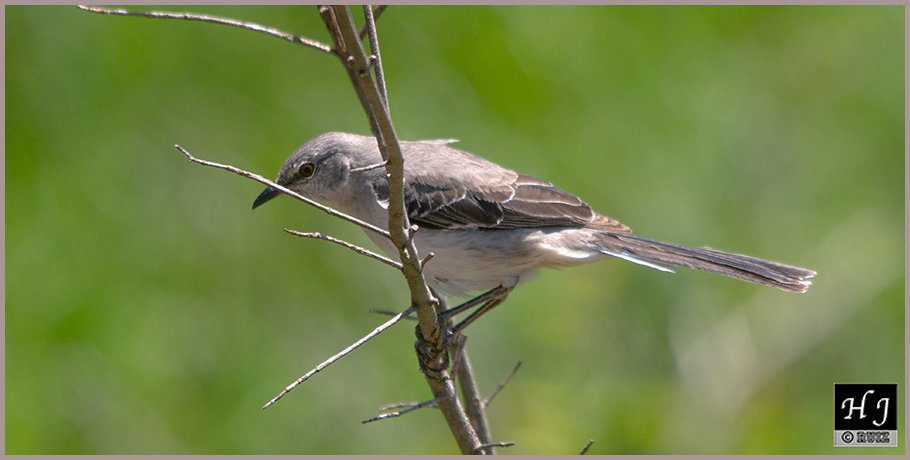 My friend, the Northern Mockingbird stands high on that branch, keeping an eye on what’s going on out there in the backyard which it is under his responsibility as the bonafide Sheriff!L-188