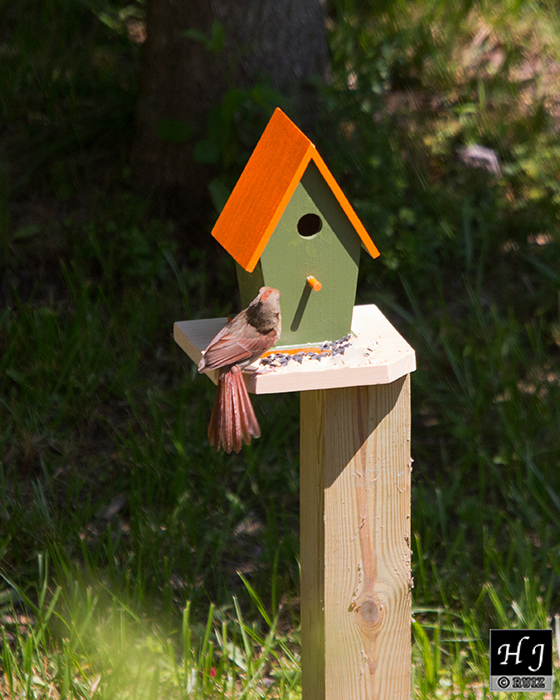 The photo shows the birdhouse before I varnished it. I haven’t installed it yet, along with the fancy new  green birdhouse (Next project)
