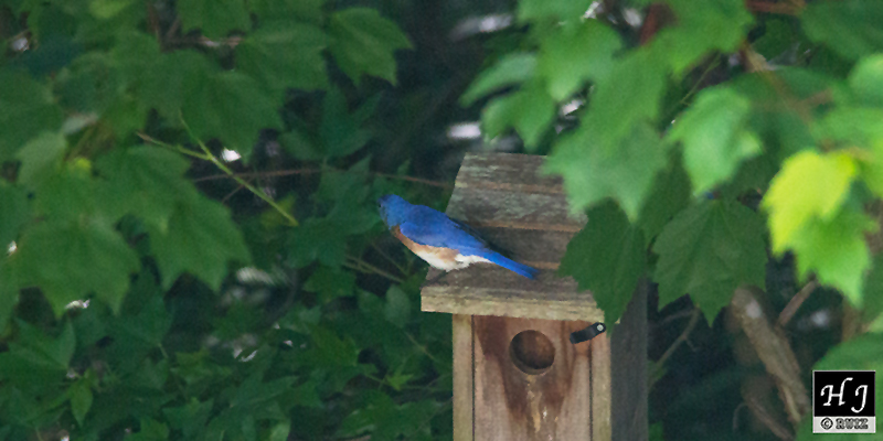 4- Male finds the old bluebird house, seems to approve it.