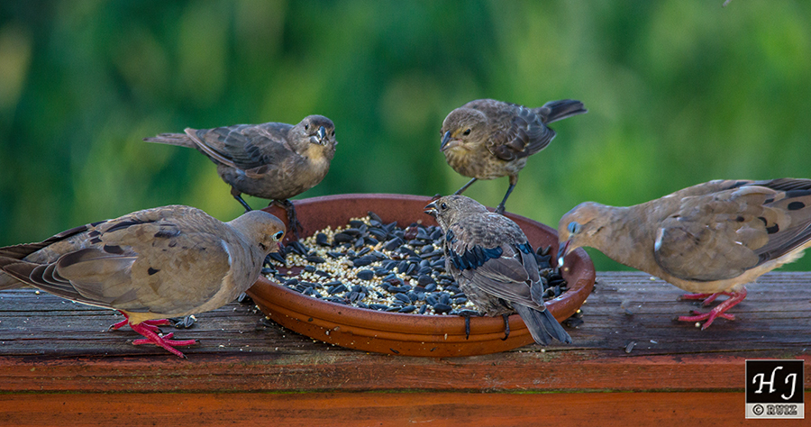 Mourning Dove with Brown-headed Cowbirds