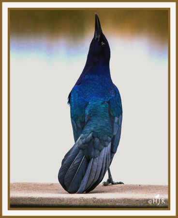 Exquisite photo, HJ. A distinctive bird, but usually only seen as black–and here you captured a unique pose and resplendent colors too.