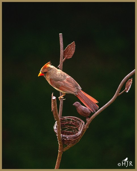 This is an iron sculpture with a very real Cardinal. Thanks Eduardo. 🙂
