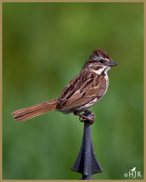 The Song Sparrow (Melospiza melodia) is a medium-sized American sparrow. Among the native sparrows in North America, it is easily one of the most abundant, variable and adaptable species.