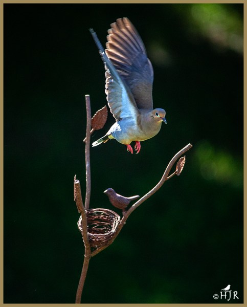 Exquisite look at the mourning dove, HJ, beautiful colors and pose. And then a little surrealism with the bird/nest sculpture. Great photo with a mysterious flair. Reply ↓