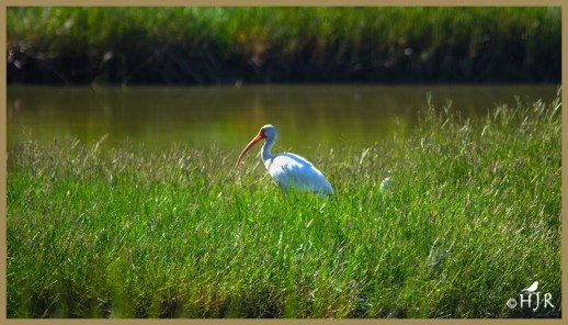 The American White Ibis (Eudocimus albus) is a species of bird in the ibis family, Threskiornithidae. It is found from Virginia via the Gulf Coast of the United States south through most of the coastal New World tropics. This particular ibis is a medium-sized bird with an overall white plumage, bright red-orange down-curved bill and long legs, and black wing tips that are usually only visible in flight. Males are larger and have longer bills than females. The breeding range runs along the Gulf and Atlantic Coast, and the coasts of Mexico and Central America. Outside the breeding period, the range extends further inland in North America and also includes the Caribbean. It is also found along the northwestern South American coastline in Colombia and Venezuela. Populations in central Venezuela overlap and interbreed with the scarlet ibis. The two have been classified by some authorities as a single species.
