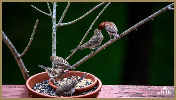 Love the Pine Warbler on the bent wire! And, of course, Dad feeding the House Finch chicks, sweet!