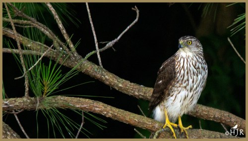 Only last week we had one in our back yard eating a pigeon, H.J. It always makes me feel bad, as feeders make it easier for them to hunt prey.