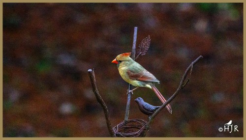 Here’s a bird I have never seen in courtship, so I enjoyed hearing about it, HJ. One can never get enough of the northern cardinal. Terrific photos here, my friend. The last one put a smile on my face. Both birds, animate and not, facing in the same direction. Cheers to the red, red and red. đ