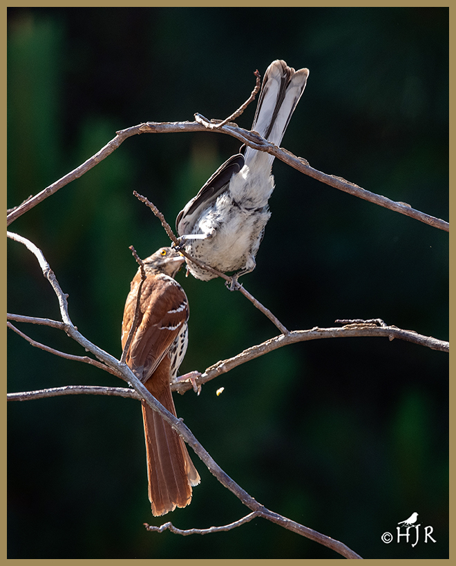 Thrasher starts feeding bird