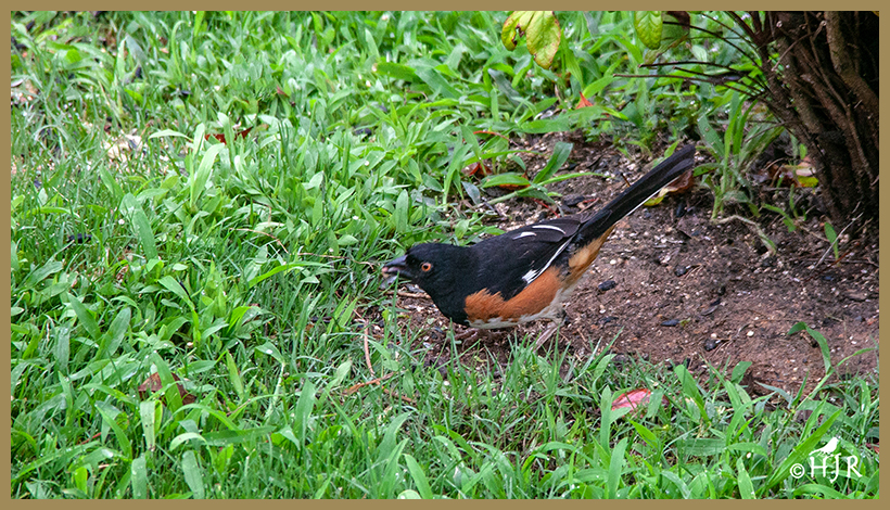 E. Towhee (M) also looking for a delicious meal.