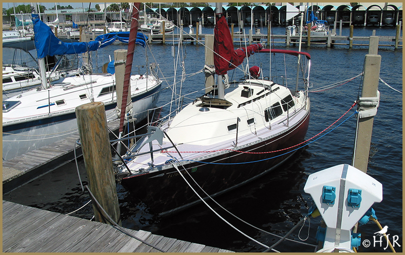 1 – Top Left: Small sailboat docked at marina in Florida West Coast.