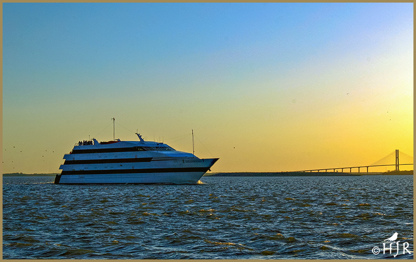 4 – Middle – Bottom: Large boat from a tour sailing between Jekyll Island and Brunswick to view the sunset, in Georgia.