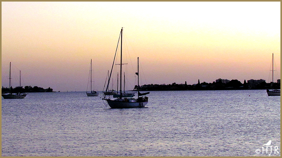 5 – Bottom: Sailboats anchored at Sarasota Bay at near sunset in Florida.