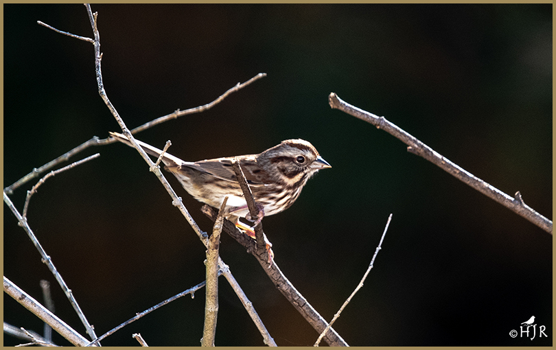 The Song Sparrow (Melospiza melodia) is a medium-sized New World sparrow. Though a habitat generalist, the song sparrow favors brushland and marshes, including salt marshes across most of Canada and the United States. They also thrive in human dominated areas such as in suburbs, agricultural fields, and along roadsides. Permanent residents of the southern half of their range, northern populations of the song sparrow migrate to the southern United States or Mexico during winter and intermingle with the native, non-migratory population. The song sparrow is a very rare vagrant to western Europe, with a few recorded in Great Britain and Norway.