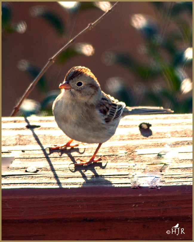 The Field Sparrow (Spizella pusilla) is a small New World sparrow in the family Passerellidae. Thiese birds are a must have on every backyard ’s feeders. I call them “happy birds” congenial with other birds. Their breeding habitat is brushy, shrubby fields across eastern North America. The nest is an open cup on the ground under a clump of grass or in a small thicket. These birds are permanent residents in the southern parts of their range. Northern birds migrate to the southern United States and Mexico.,