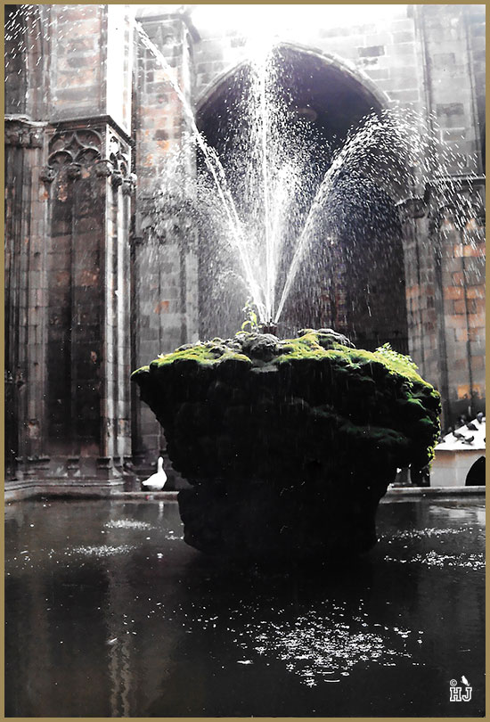 10 – Bottom Row- Second column: Water fountain inside of an ancient Cathedral in Granada.