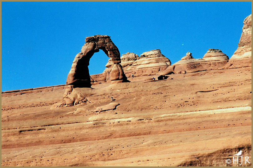 • This arch is monumental in size, as you can see compared to size of people, It looks feeble but it is eons old, named “delicate” I think by Native Americans. Thanks, John. 🙂