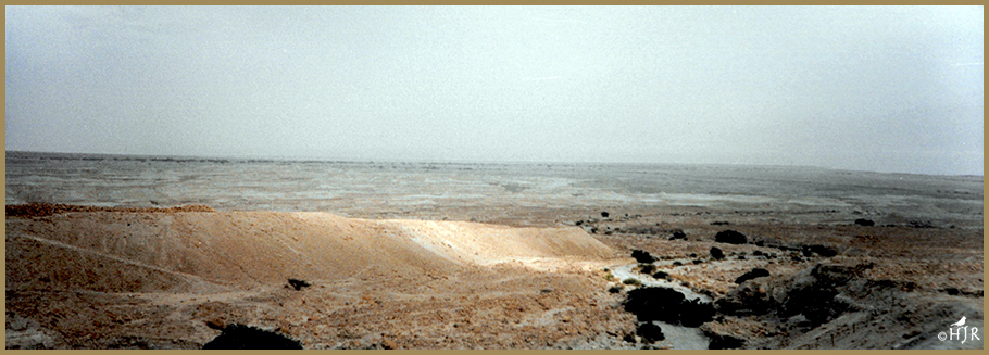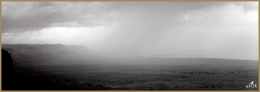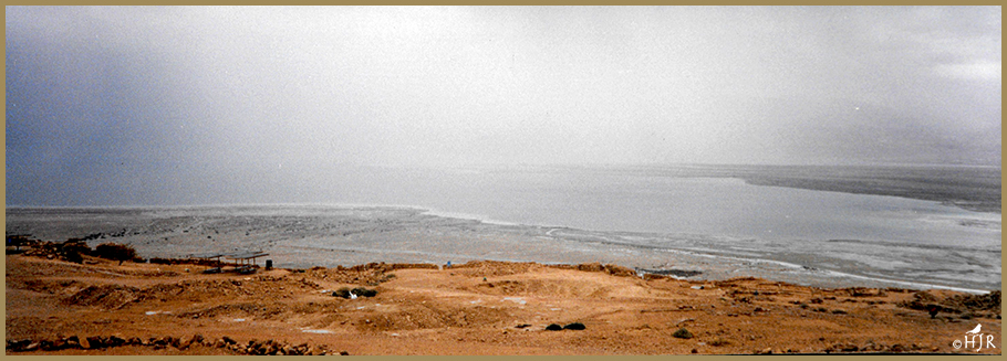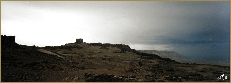Masada is facing the Dead Sea and on the other side is the Judean Desert. My wife and I were walking around the top with other visitors from many countries, the day as is expected is over 100º F (Desert temperatures at noon at the lowest sea in the world are common). We were observing every point where the Tour Guide signaled and explained what it was long ago. When suddenly became dark and we saw dark clouds rolling toward Masada…