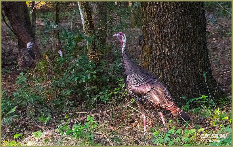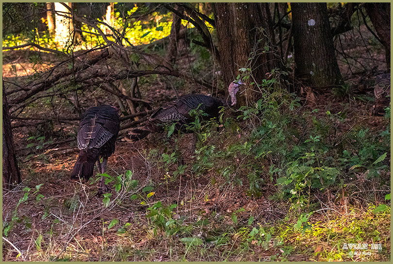 NOTE: If you look well, the Wild Turkeys are accompanied by a tour Deer. Feeding from a fallen tree.