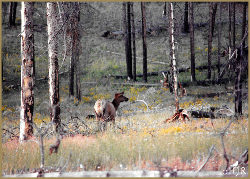 1 – Solitary Elk looking for food at a wood in Yellowstone National Park, Wyoming.