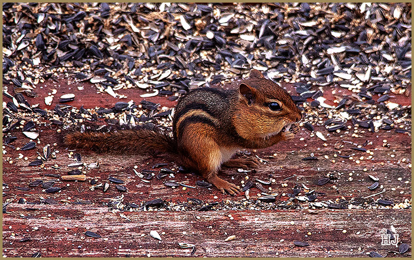 3 – This Chipmunk is gathering seeds until his cheeks are filled up, on my backyard’s deck in Georgia.