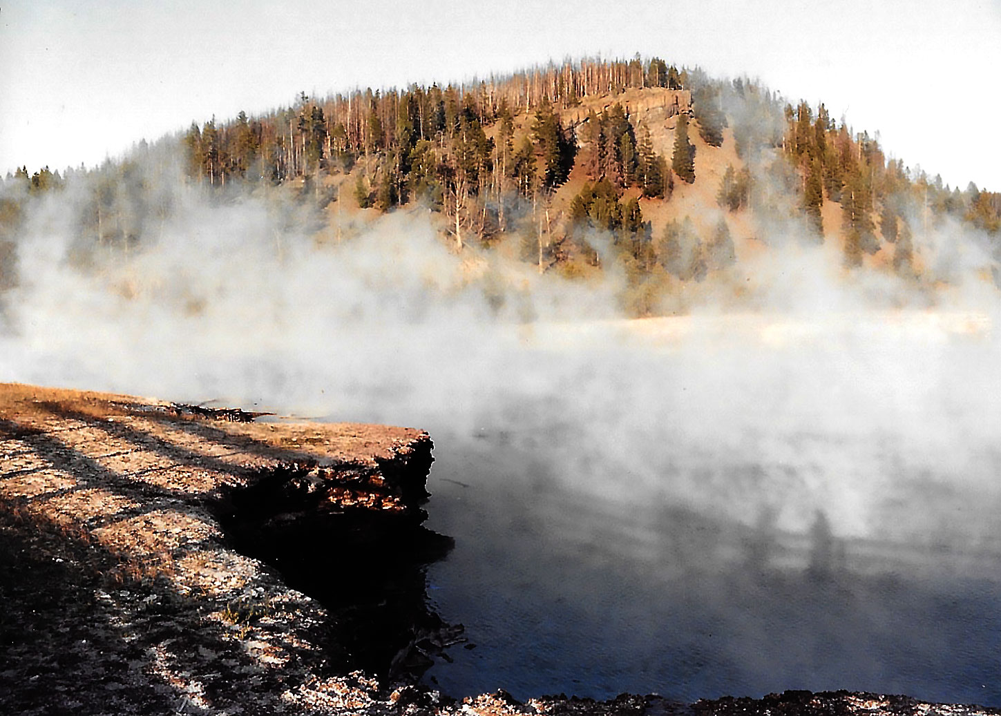 6 – One of many lagoons atYellowstone Nat. Park were boiling minerals water flows and the steam floats in the air, in Wyoming