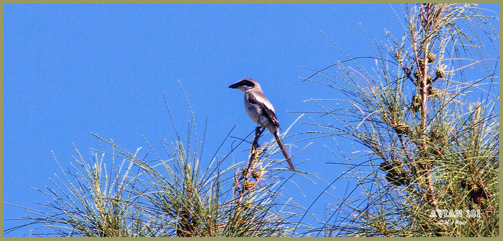I first learned about Loggerhead Shrikes after seeing one with a baby bird in its claws. Later, I learned to recognize their presence by the sight of beetles impaled on barbed wire!