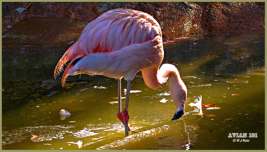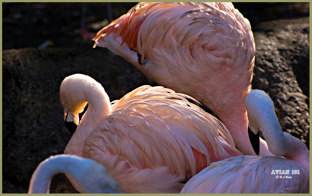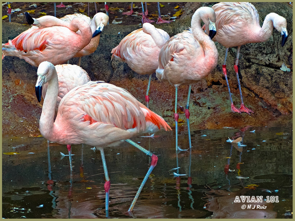 The Chilean Flamingo (Phoenicopterus chilensis) is a species of large flamingo at a height of 110–130 cm (43–51 in) closely related to the American flamingo and the greater flamingo, with which it was sometimes considered conspecific. The species is listed as Near Threatened by the IUCN. It breeds in South America from Ecuador and Peru to Chile and Argentina and east to Brazil; it has been introduced into Germany. Like all flamingos, it lays a single chalky-white egg on a mud mound. These flamingos are mainly restricted to salt lagoons and soda lakes but these areas are vulnerable to habitat loss and water pollution. The plumage is pinker than the slightly larger greater flamingo, but less so than the Caribbean flamingo. It can be differentiated from these species by its grayish legs with pink joints (tibiotarsal articulation), and also by the larger amount of black on the bill (more than half). Young chicks may have no sign of pink coloring whatsoever, but instead remain gray or peach.